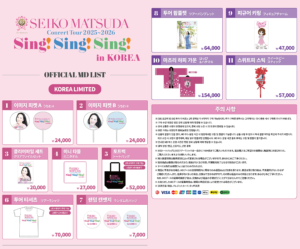 45th Anniversary SEIKO MATSUDA CONCERT TOUR 2025~2026 “Sing! Sing! Sing!” in KOREA オフィシャルグッズ販売のご案内 -
